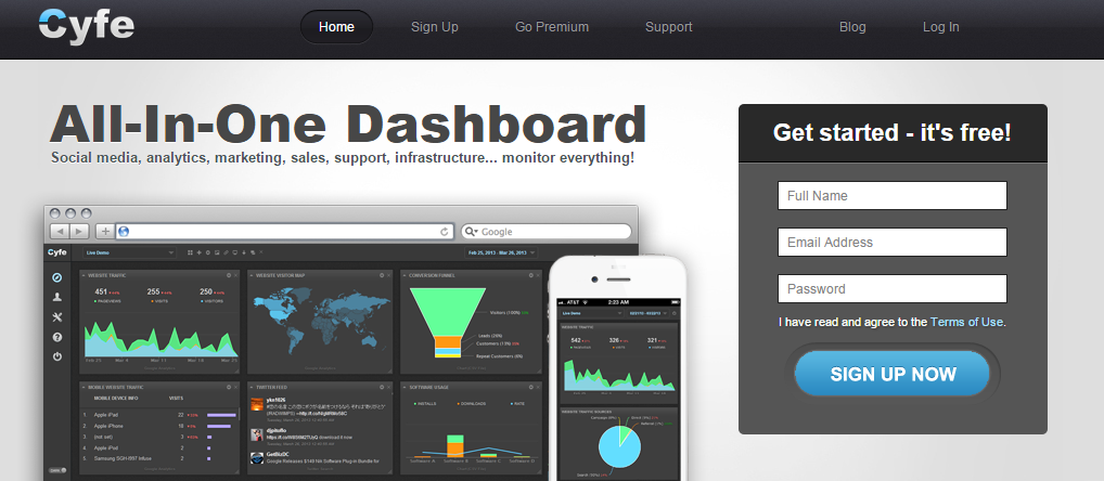 Track your startup’s performance by using Cyfe’s All-In-One Dashboard. Access all information that you need from one place and monitor every aspect of your startup’s data – social media, analytics, marketing, sales, support, and infrastructure.