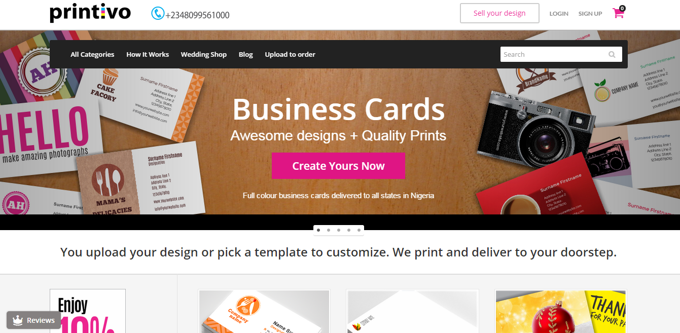 Printivo is an online print provider that offers their customers ready-to-be-printed templates, created by designers across Nigeria. The users can upload their designs or pick already existing template and they will have it printed and delivered to their address. From business cards through custom made mugs to wedding products, Printivo promises 100% customer satisfaction and fast delivery across Nigeria.
