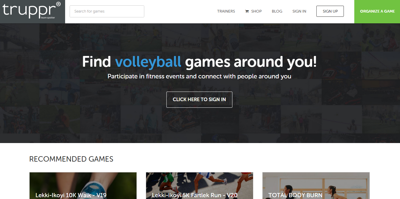 Truppr is an online platform that connects its users who are interested in specific sport activities and events. The athletic enthusiasts can create sport event, share it with their friends, look up for existing events in their city and surrounding areas. The users will get alerts every time a player subscribes to their event and all participants will be notified a few hours before the event starts.